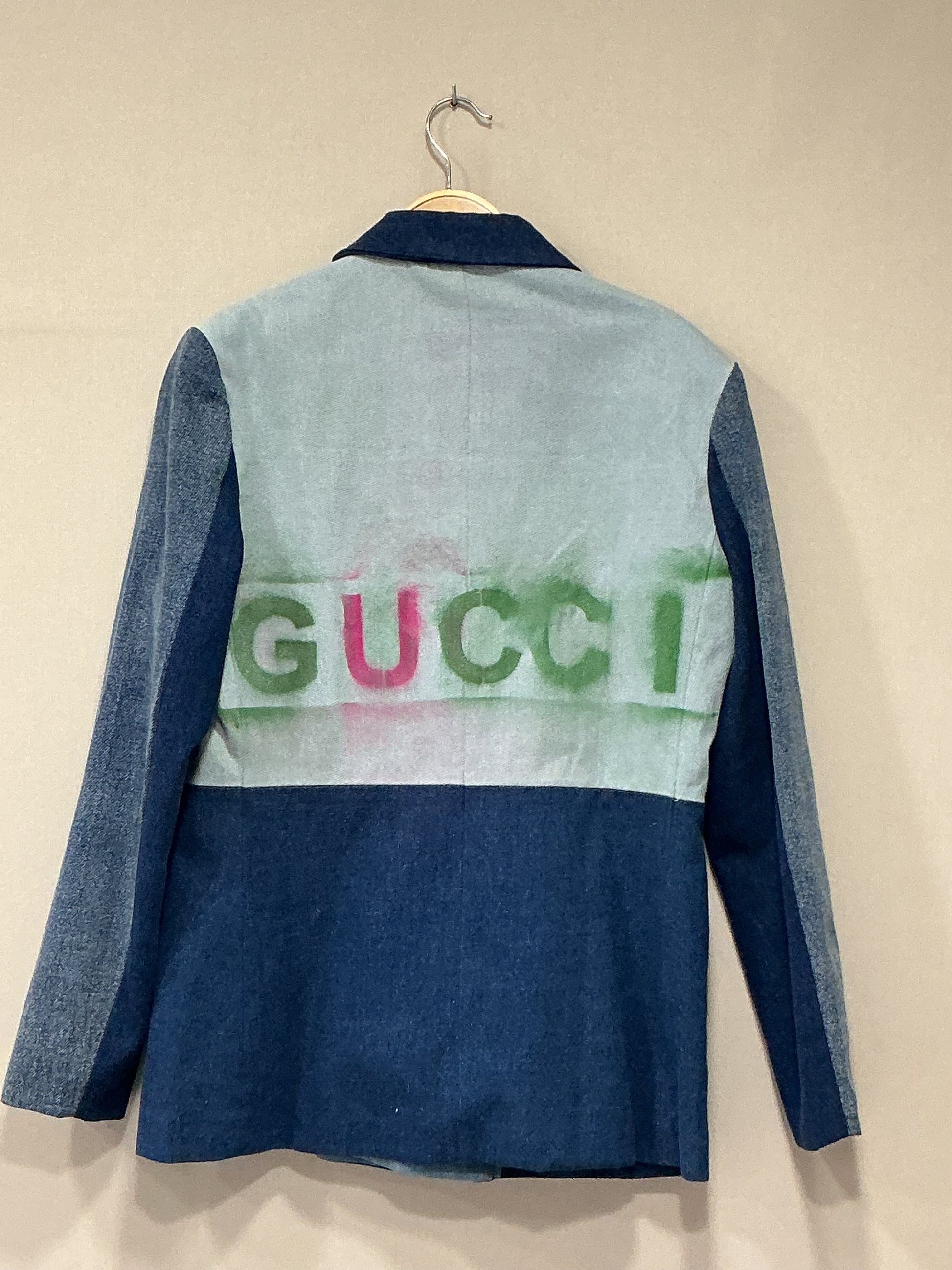 Blazer denim chi, estampada de la espalda, tallaje ancho