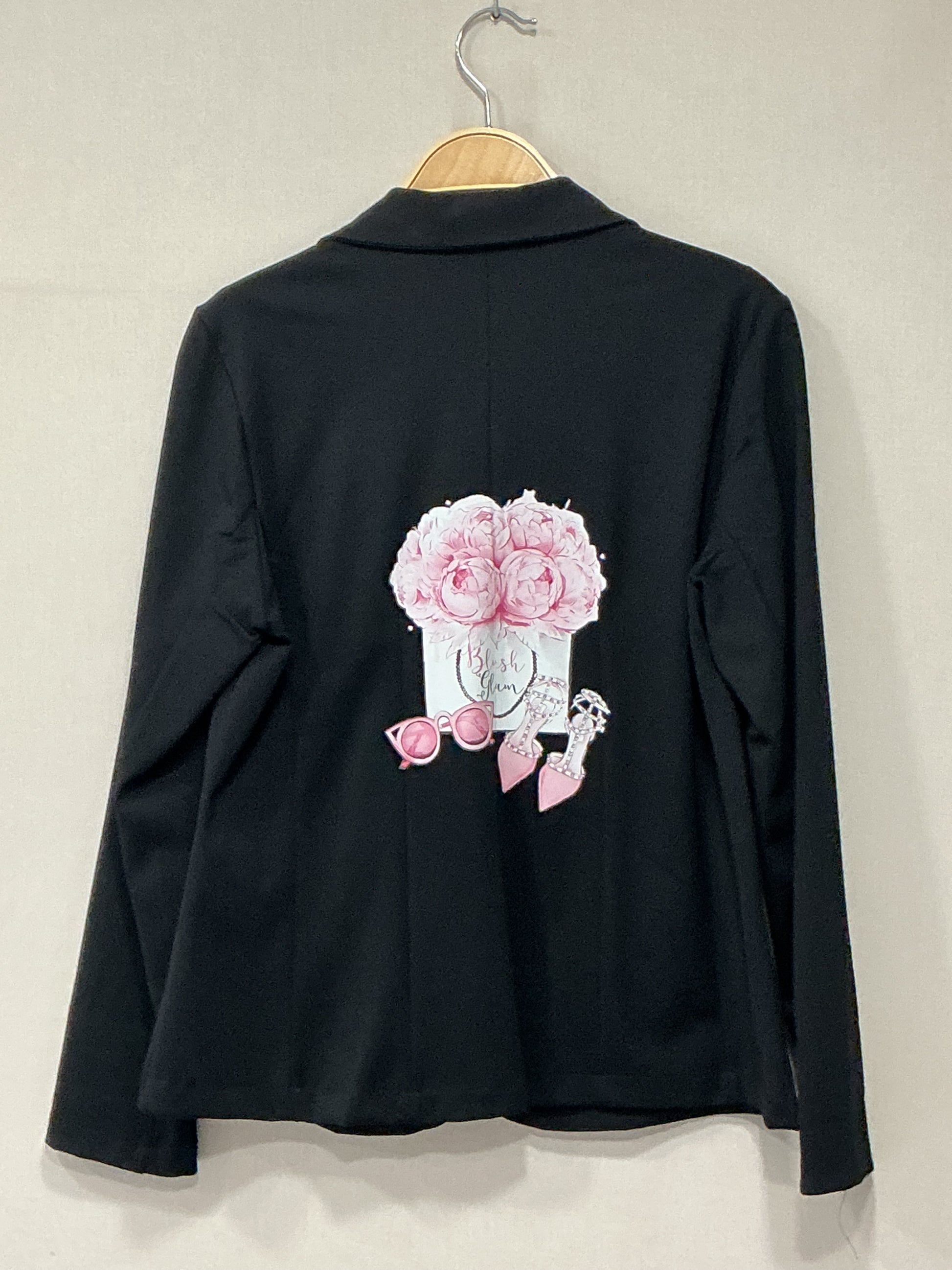 Blazer negra estampado floral , tallaje entallado y adaptable al cuerpo