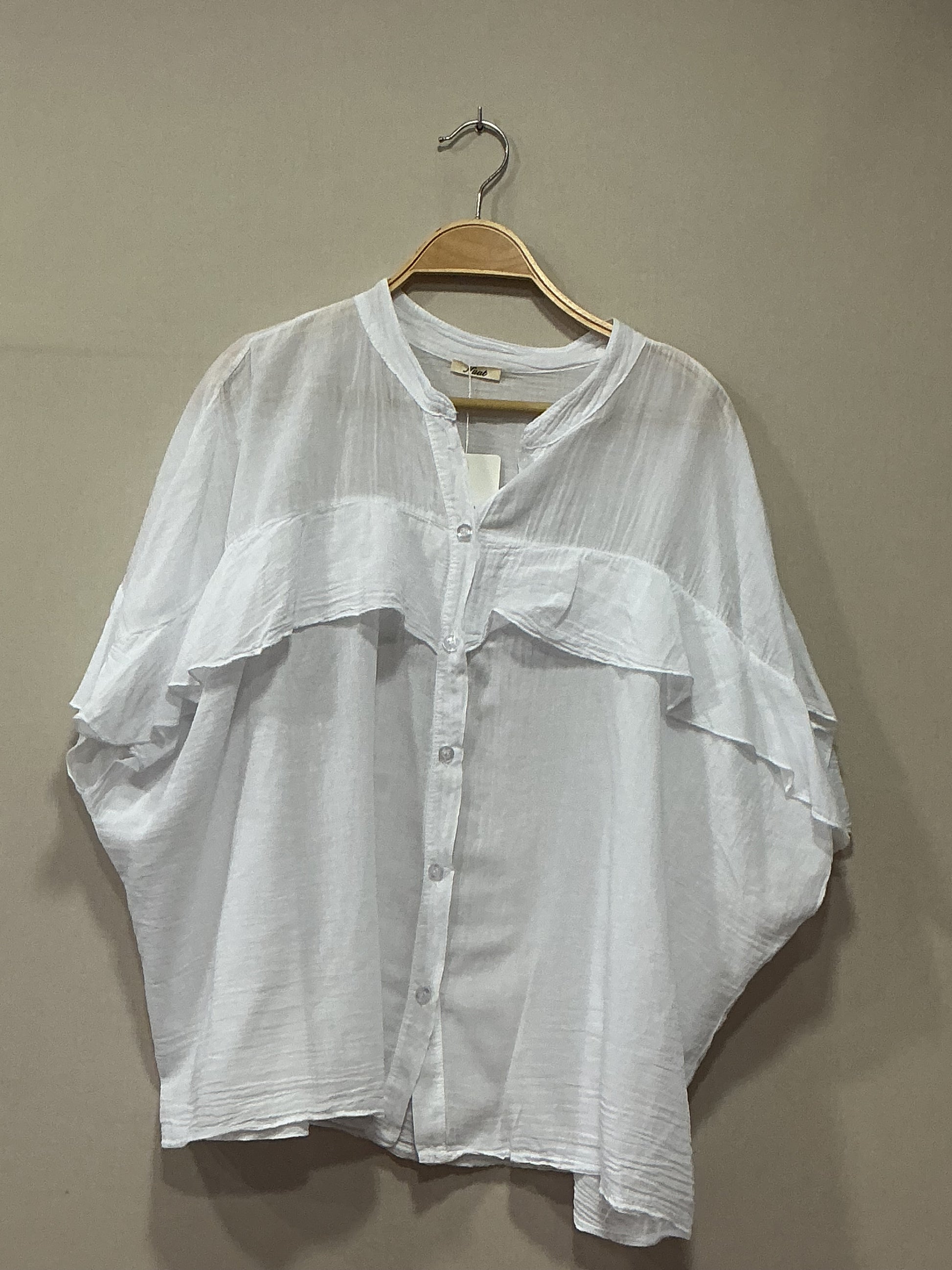 Brusa Patri blanca manga corta de algodón con volantitos en las mangas, talla única, tallaje grande