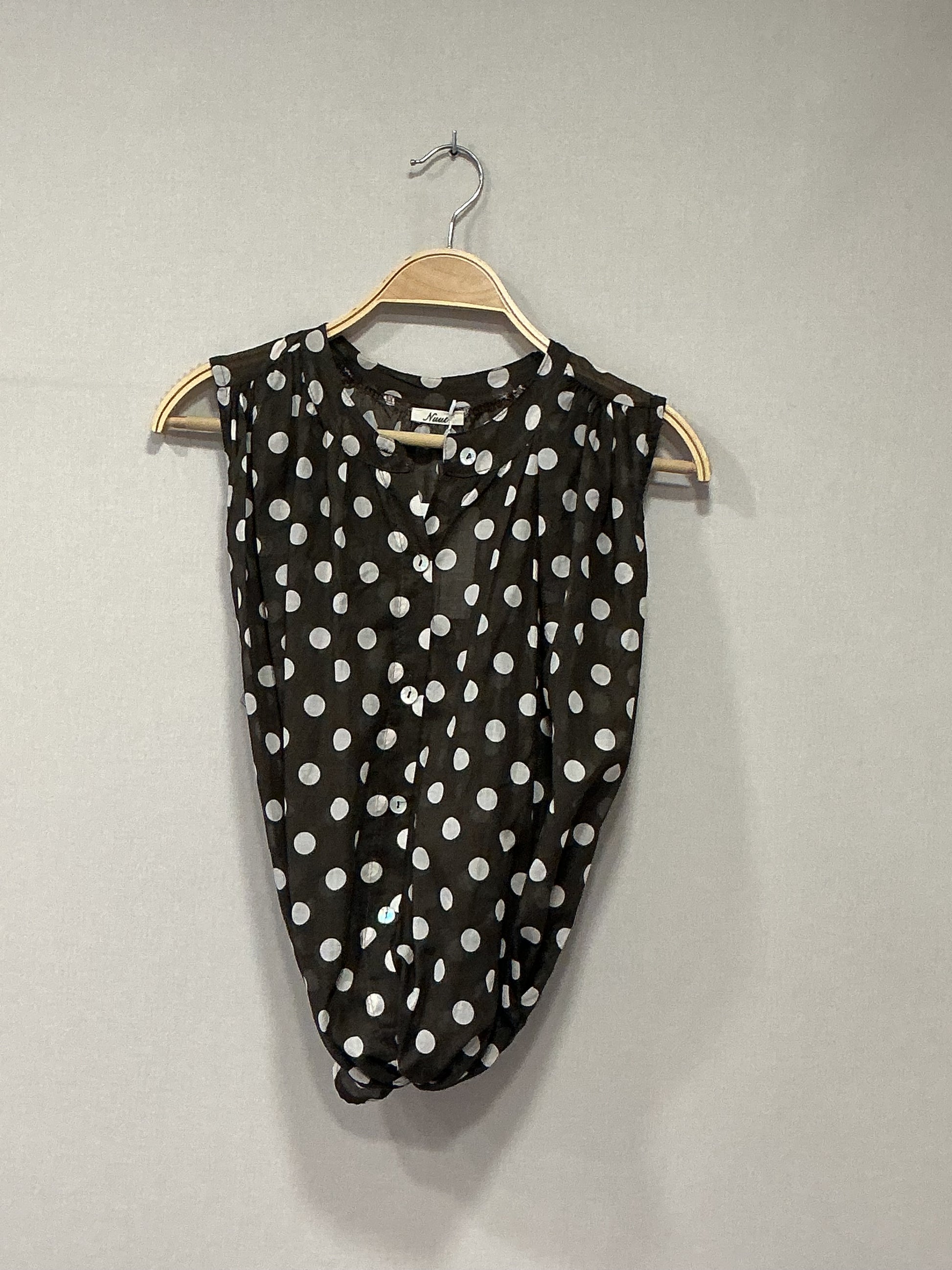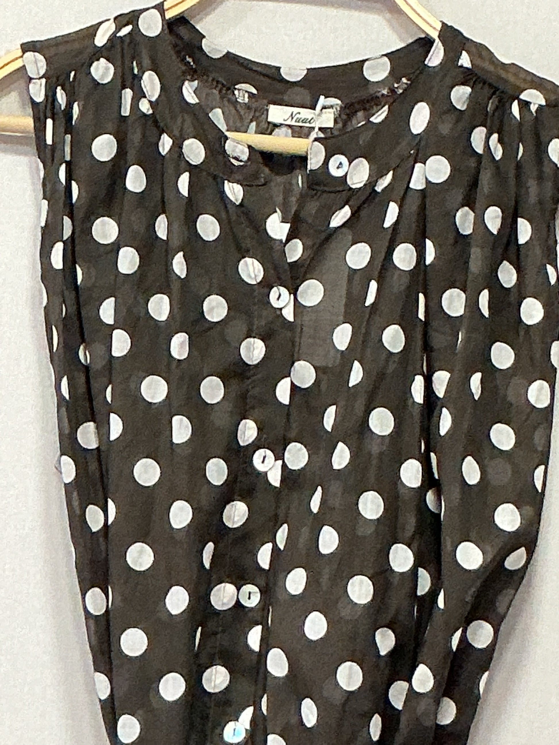 Brusa marrón con topos blancos, sin mangas de algodón delgado, talla única, tallaje grande