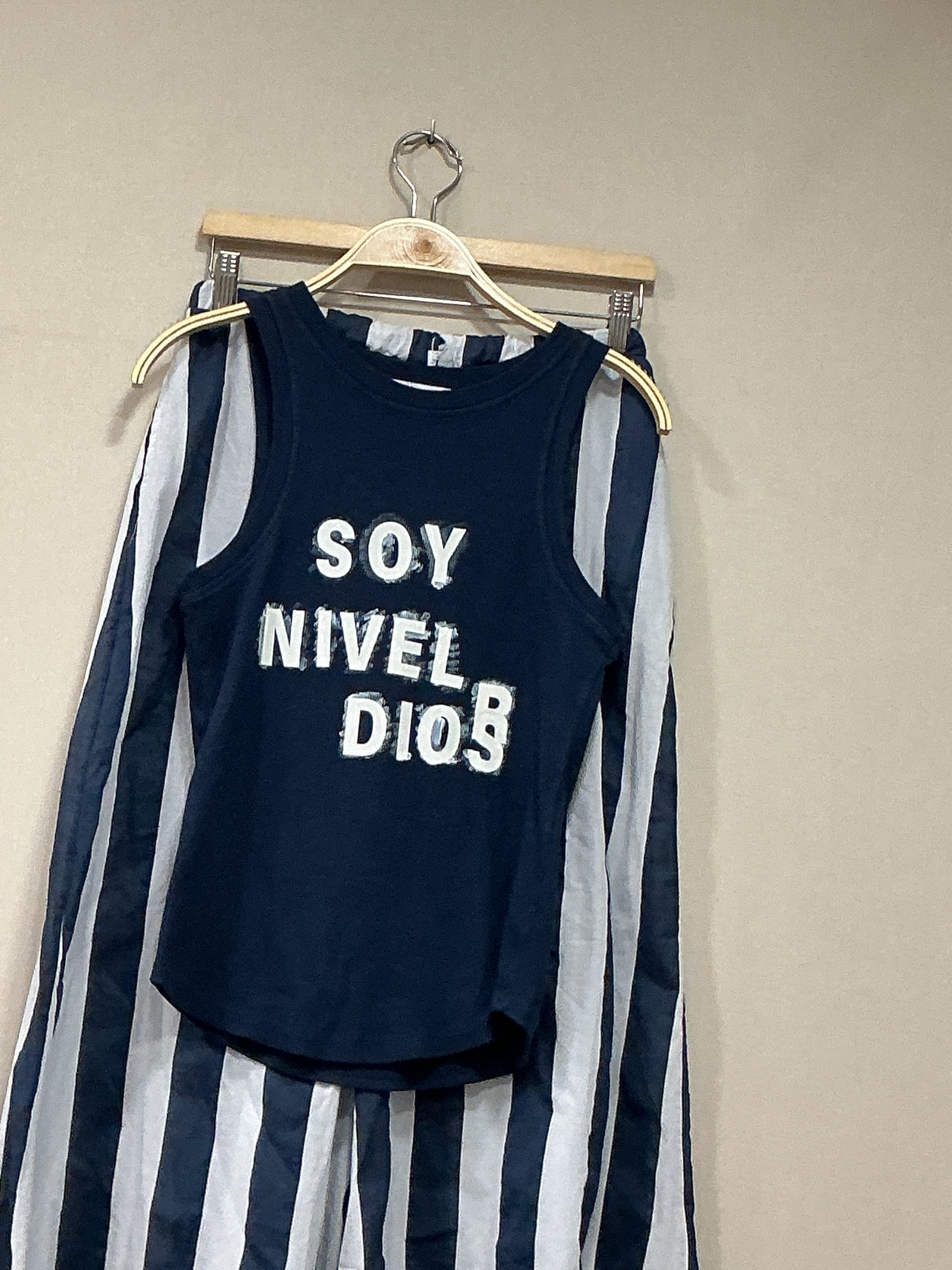 Camiseta sin mangas , de canalé, con estampado dios dior