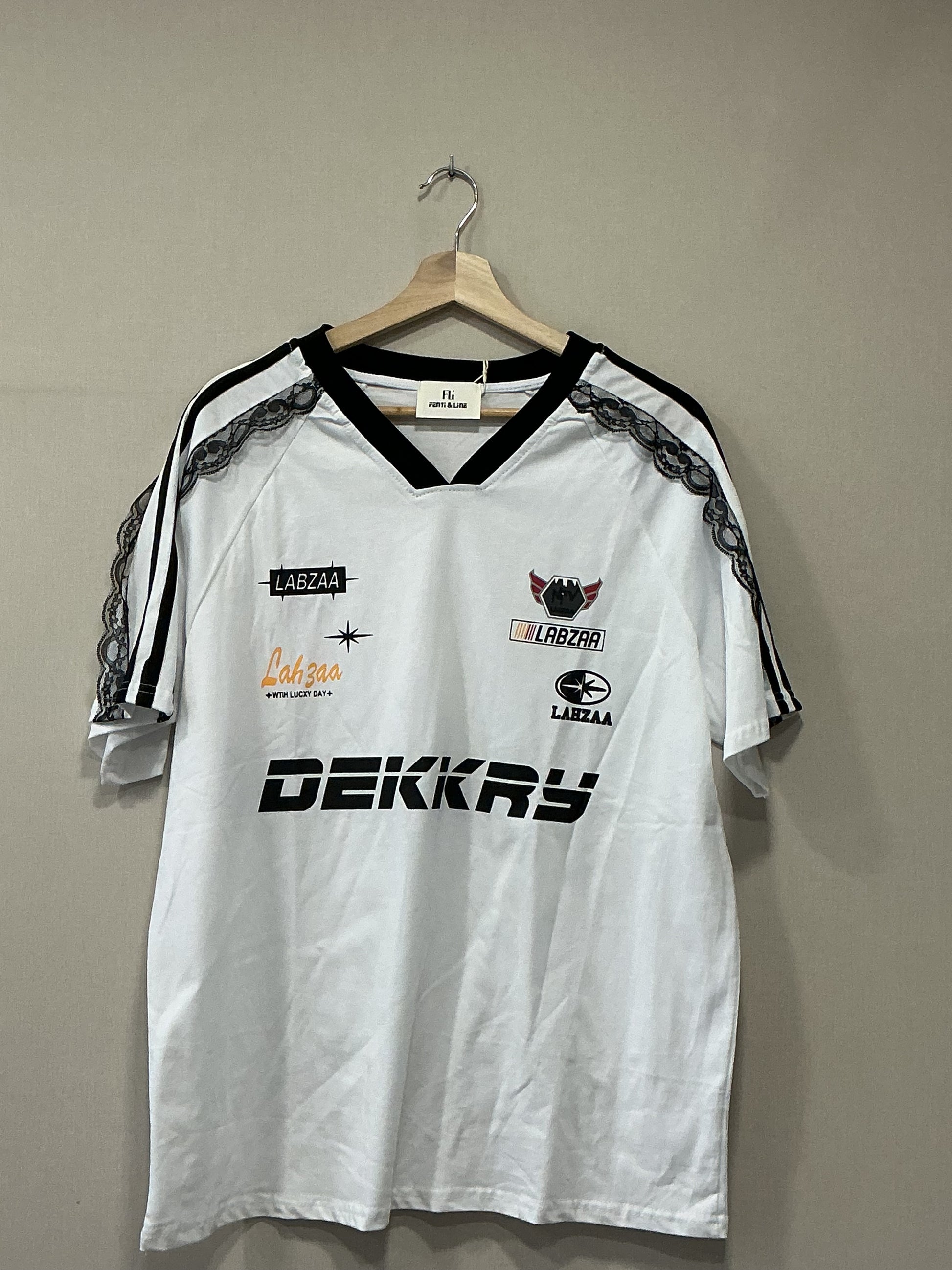 Camiseta máxima tendencia, estilo deportivo con volantito de blonda, tallaje grande, talla única