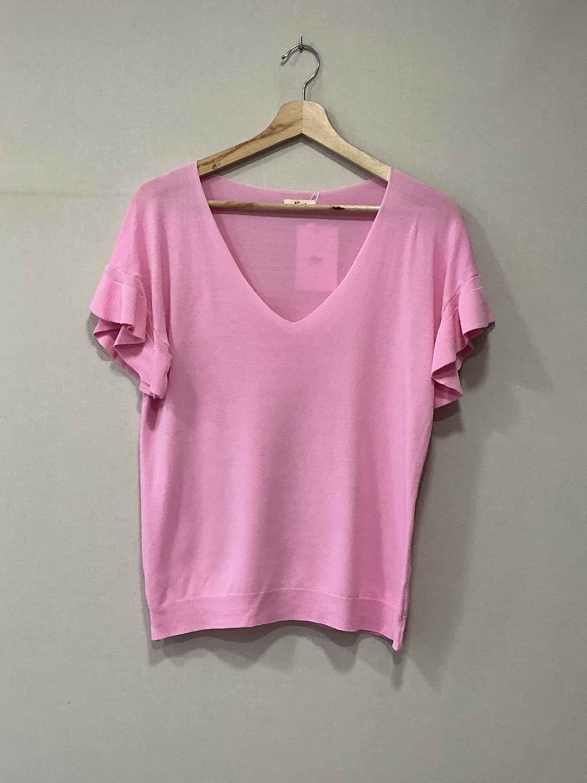Camiseta de punto fino, manga corta con volantitos, talla única ideal para M L