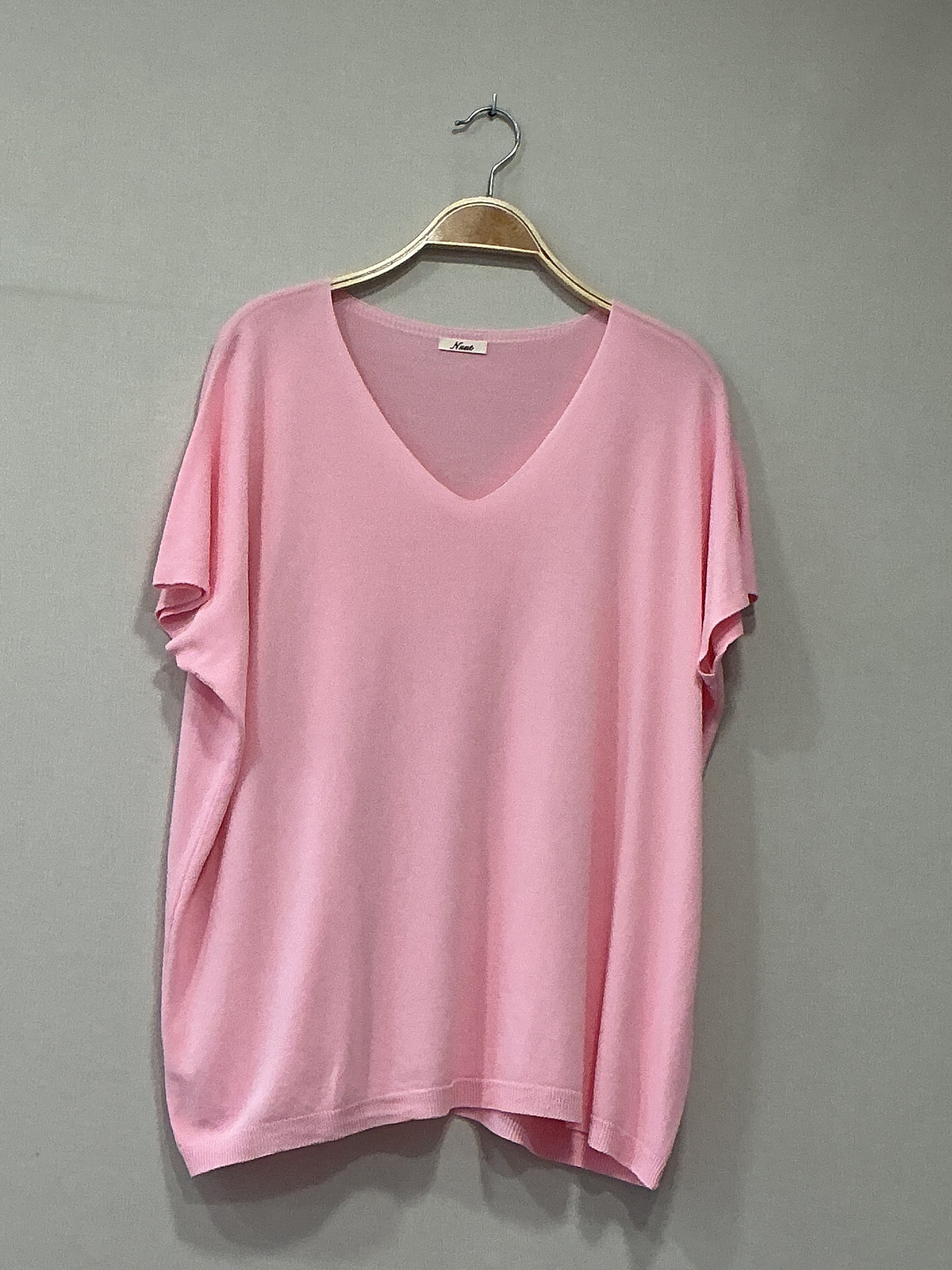 Camiseta de punto fino en color Rosa, talla única, tallaje grande