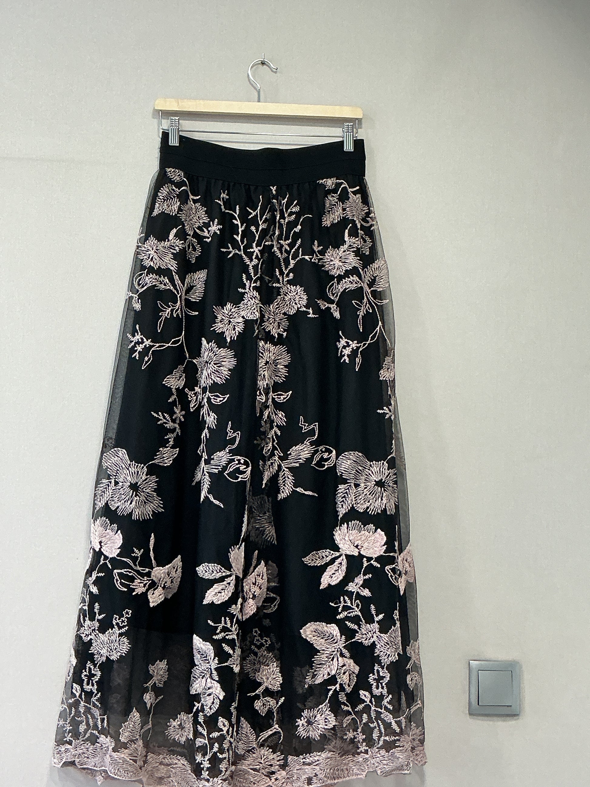 Super falda espectacular. Negra con bordados, talla única, va bien de la 36 a la 44