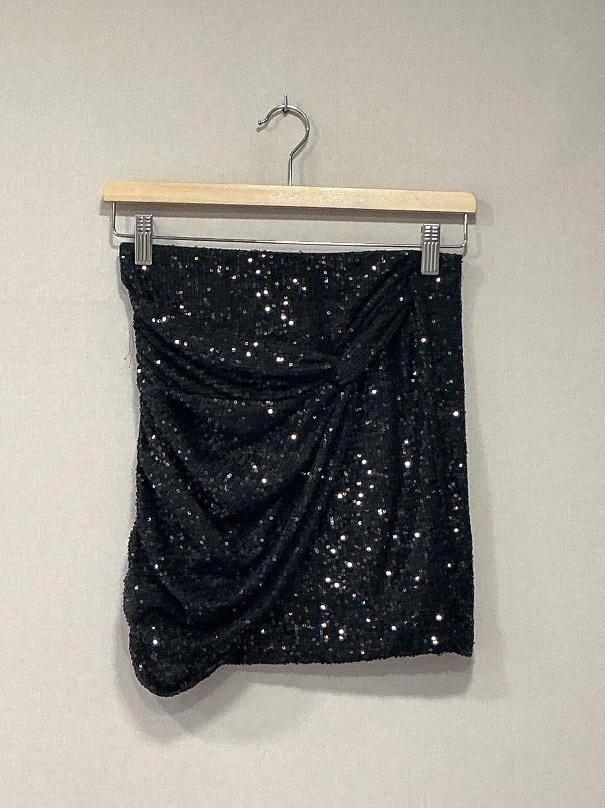 Falda mini lentejuelas color negro, con pequeño drapeado, talla única, tallaje pequeño