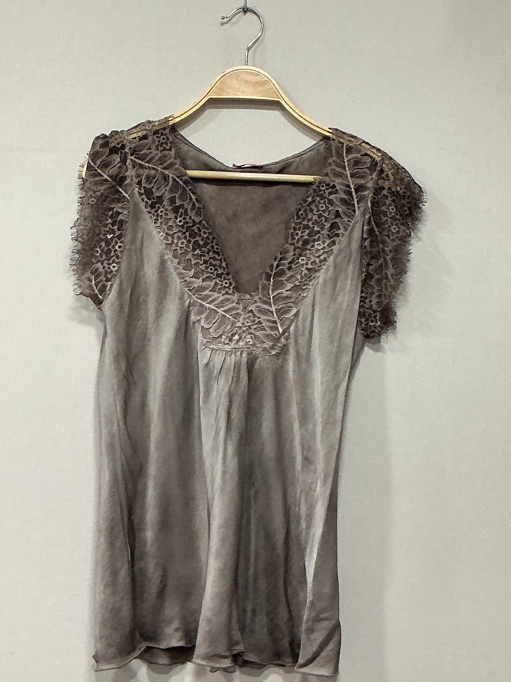 Lencero de raso y blonda,marron chocolate, talla única, tallaje grande