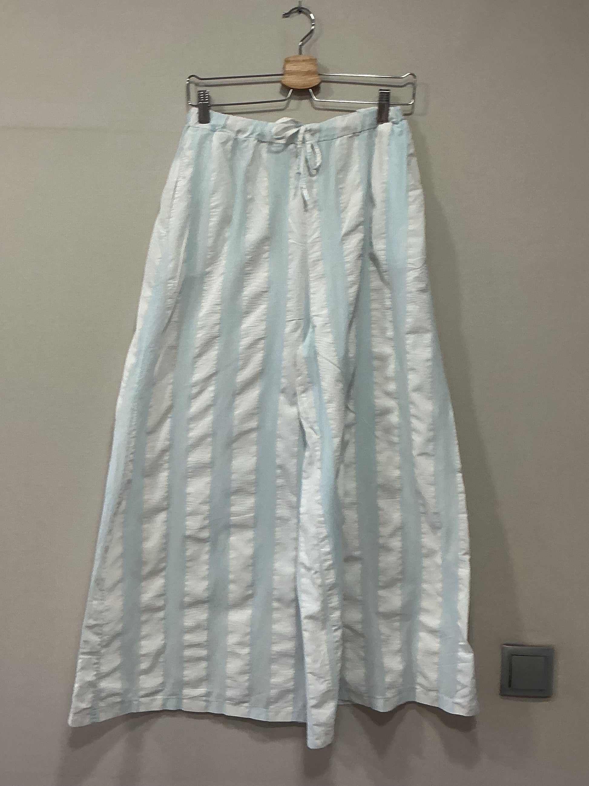 Pantalón de algodón en azul celeste, máxima tendencia, con gomita en cintura y super ancho de los bajos
