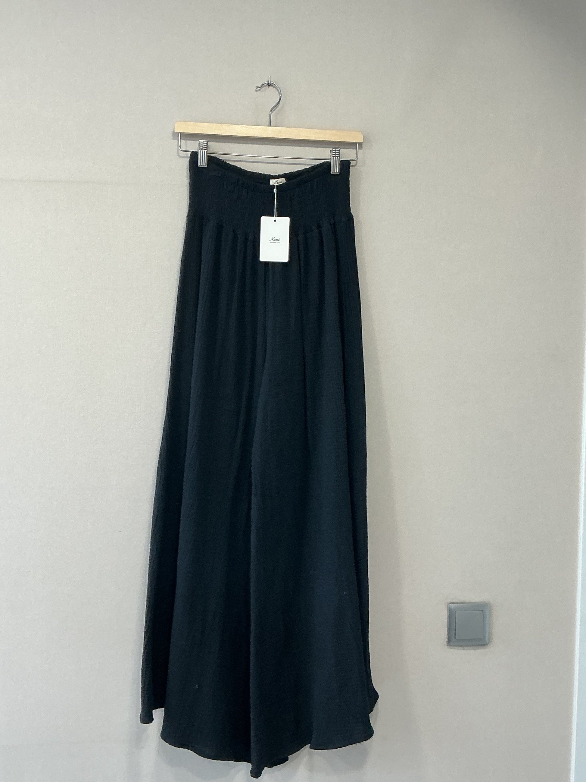 Pantalón negro de algodón mega ancho con goma en cintura, talla única( para tallas 34. 36. 38. 40