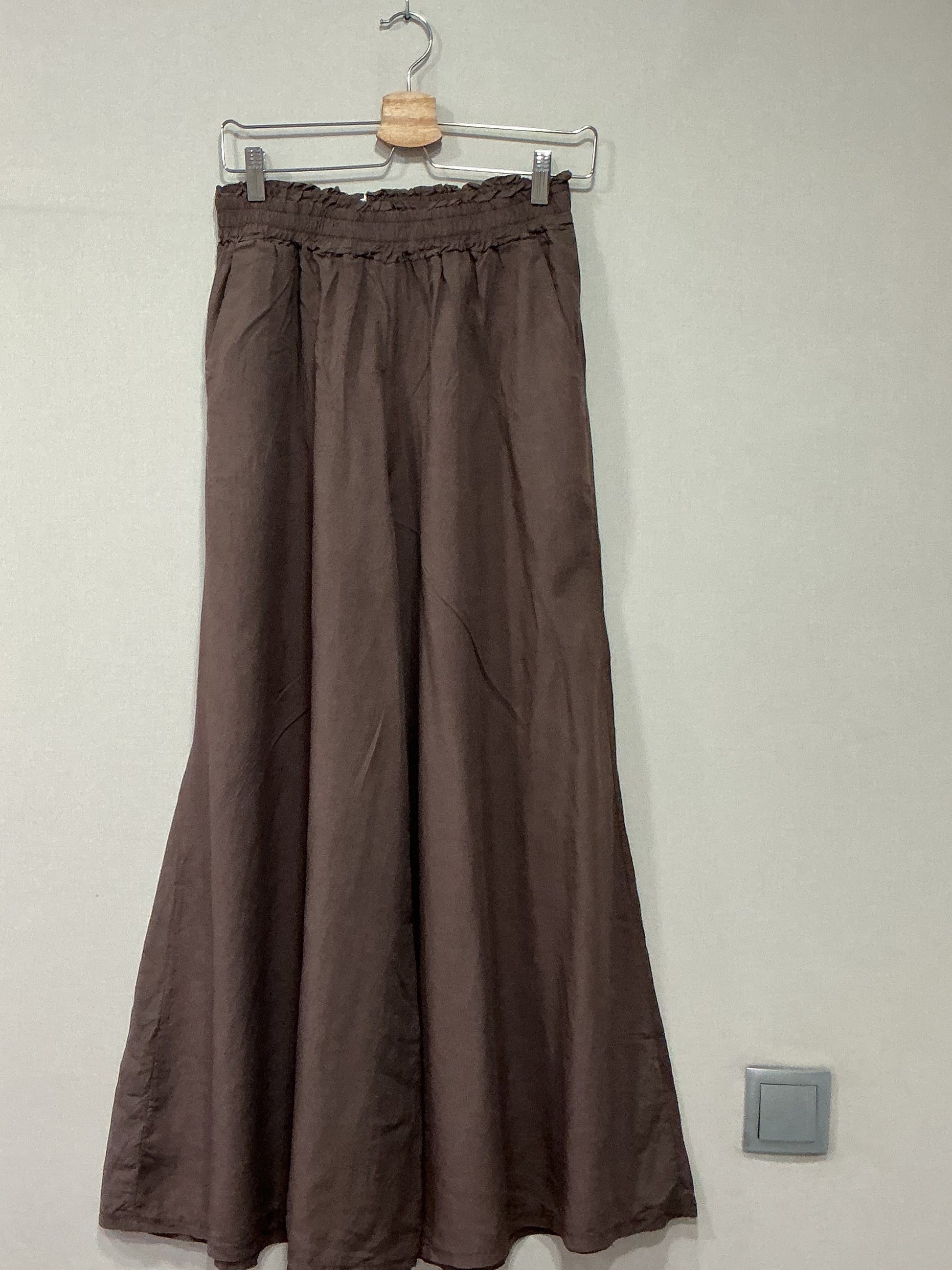 Pantalón marrón chocolate, muy ancho a, talla única para tallas de la 34 a la 40