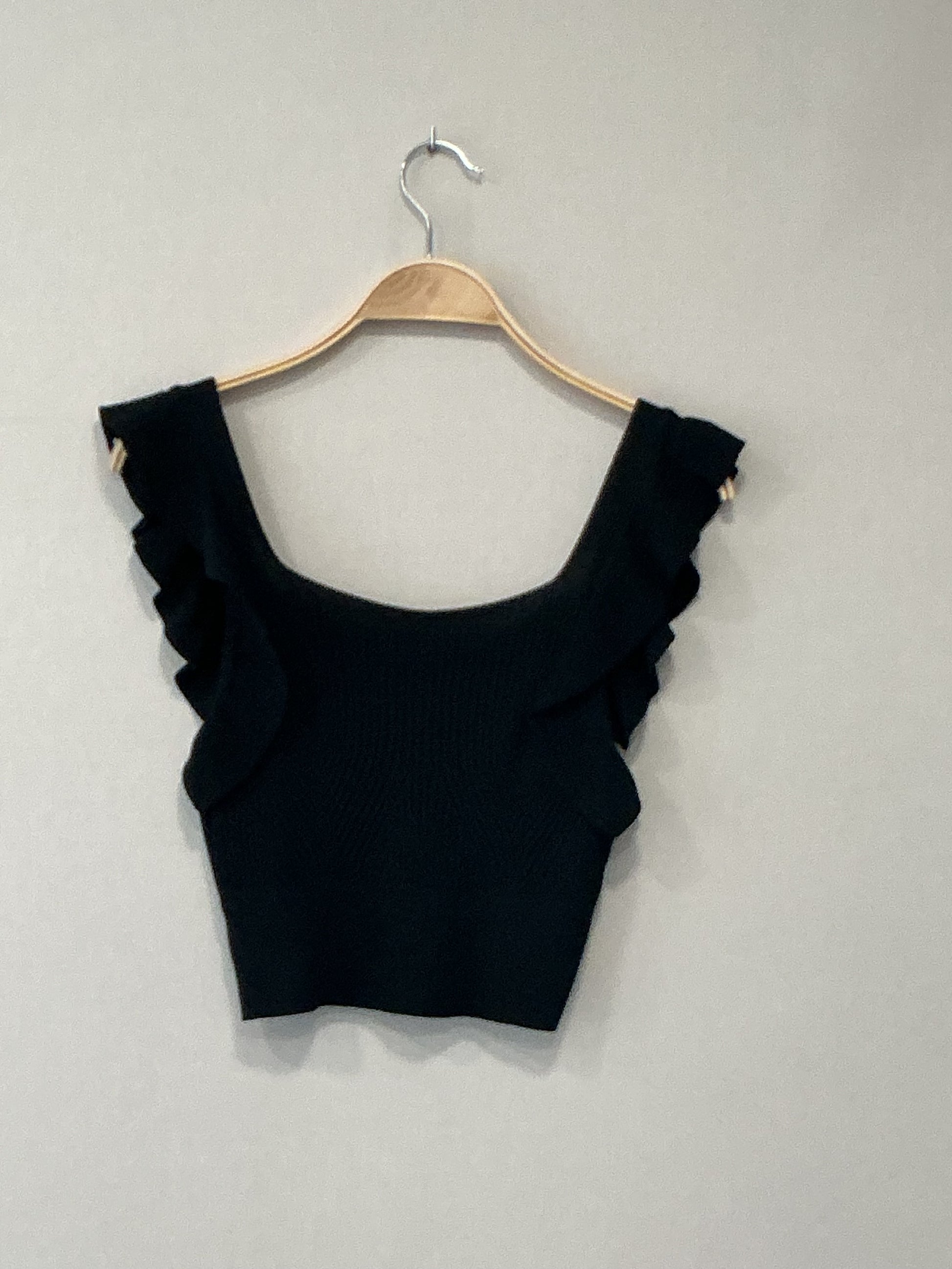 Top negro de punto con volantito, muy corto talla única