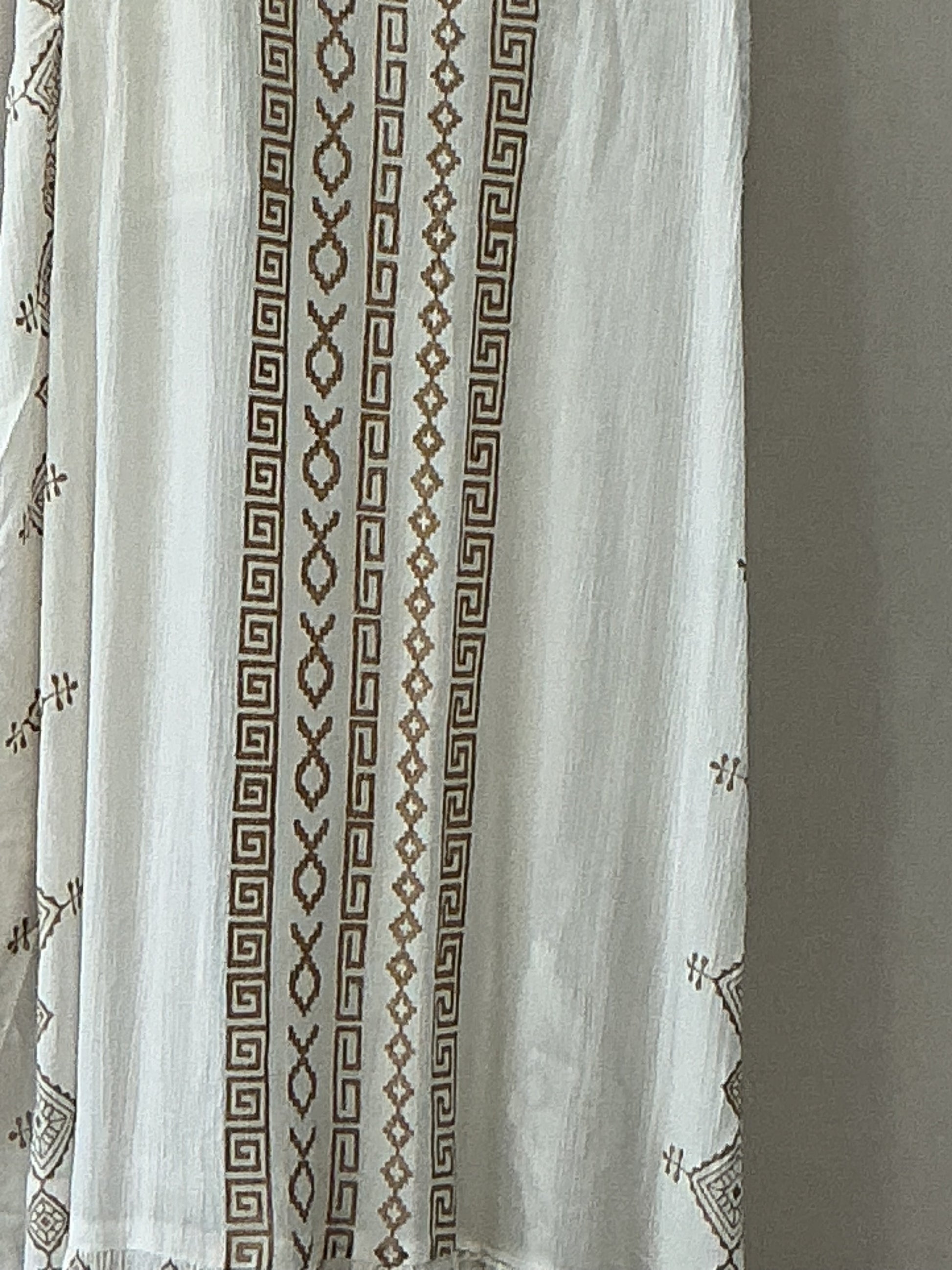 Vestido de algodón en Blanco con estampado dorado, talla única, tirante spaguetti graduable, ideal para tallas 34 36 38. 40