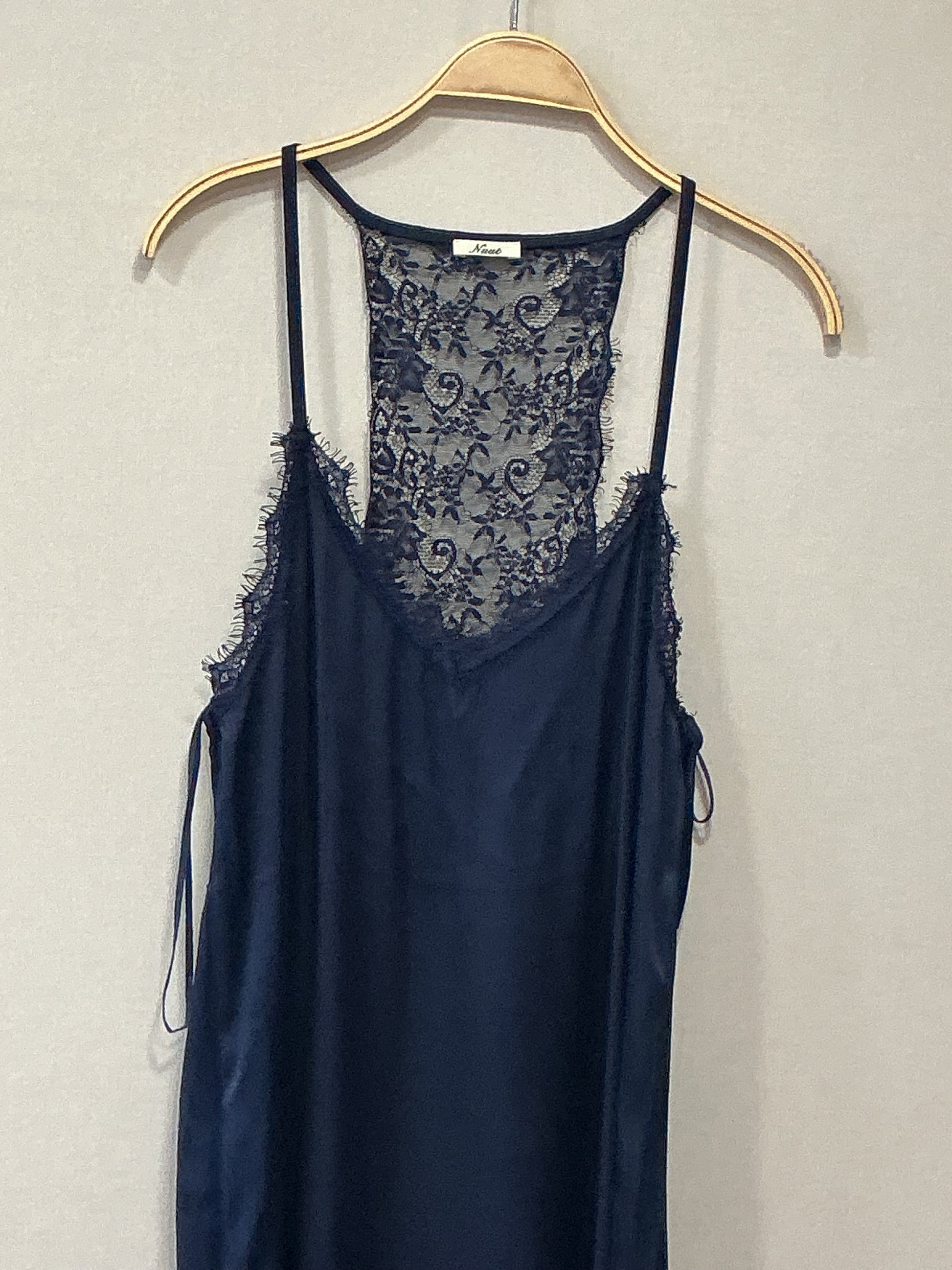Vestido marino, combinado en raso y blonda talla única, tallaje completo
